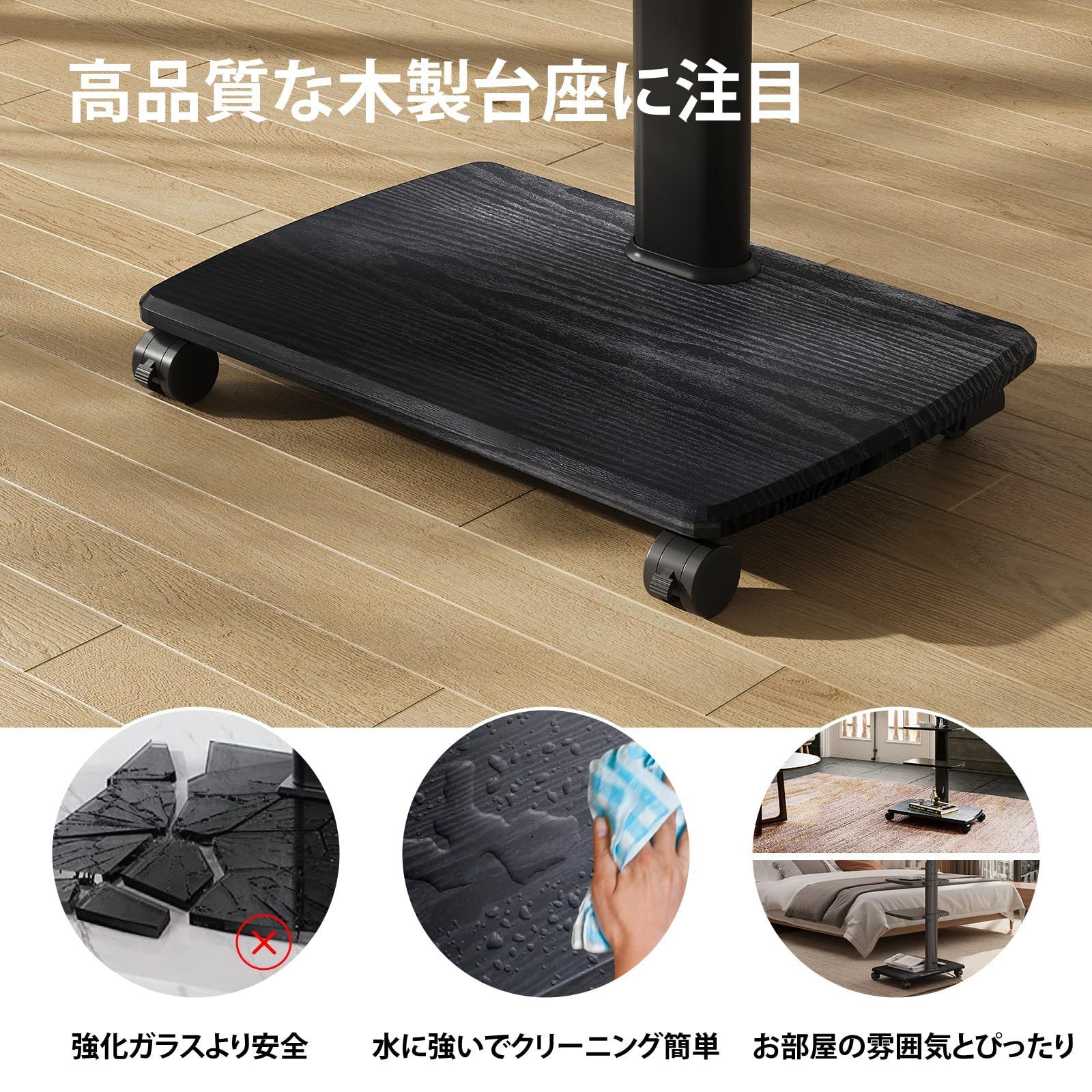 在庫 中段棚二枚付 ブラック 棚板無階段調節 木目調 移動式 高さ角度調節 キャスター付き TT306503GB 32~70型対応 テレビスタンド FITUEYES TAXISZCZECINEK_PL