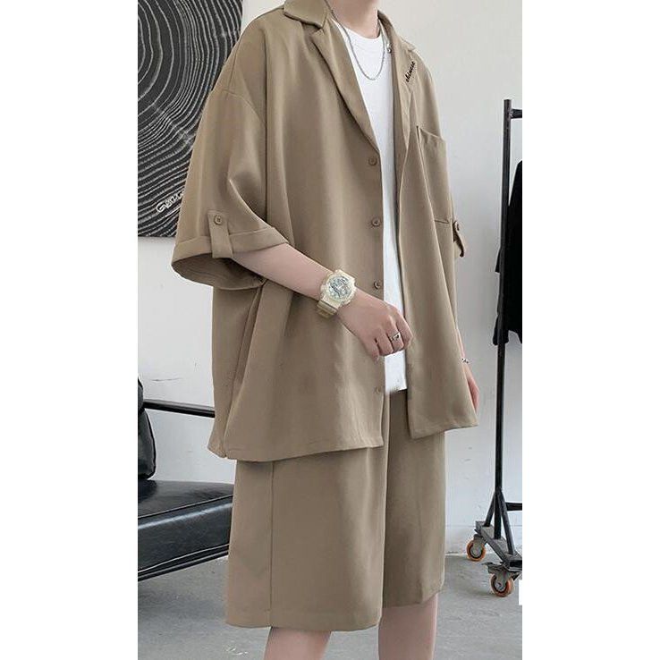 2color スーツ 春夏 2点セット 2color 七分袖ジャケット ハーフパンツ 大きいサイズ ショートパンツ 無地 ゆったり カジュアル サマー 紳士服 mjsho20038 TAXISZCZECINEK_PL